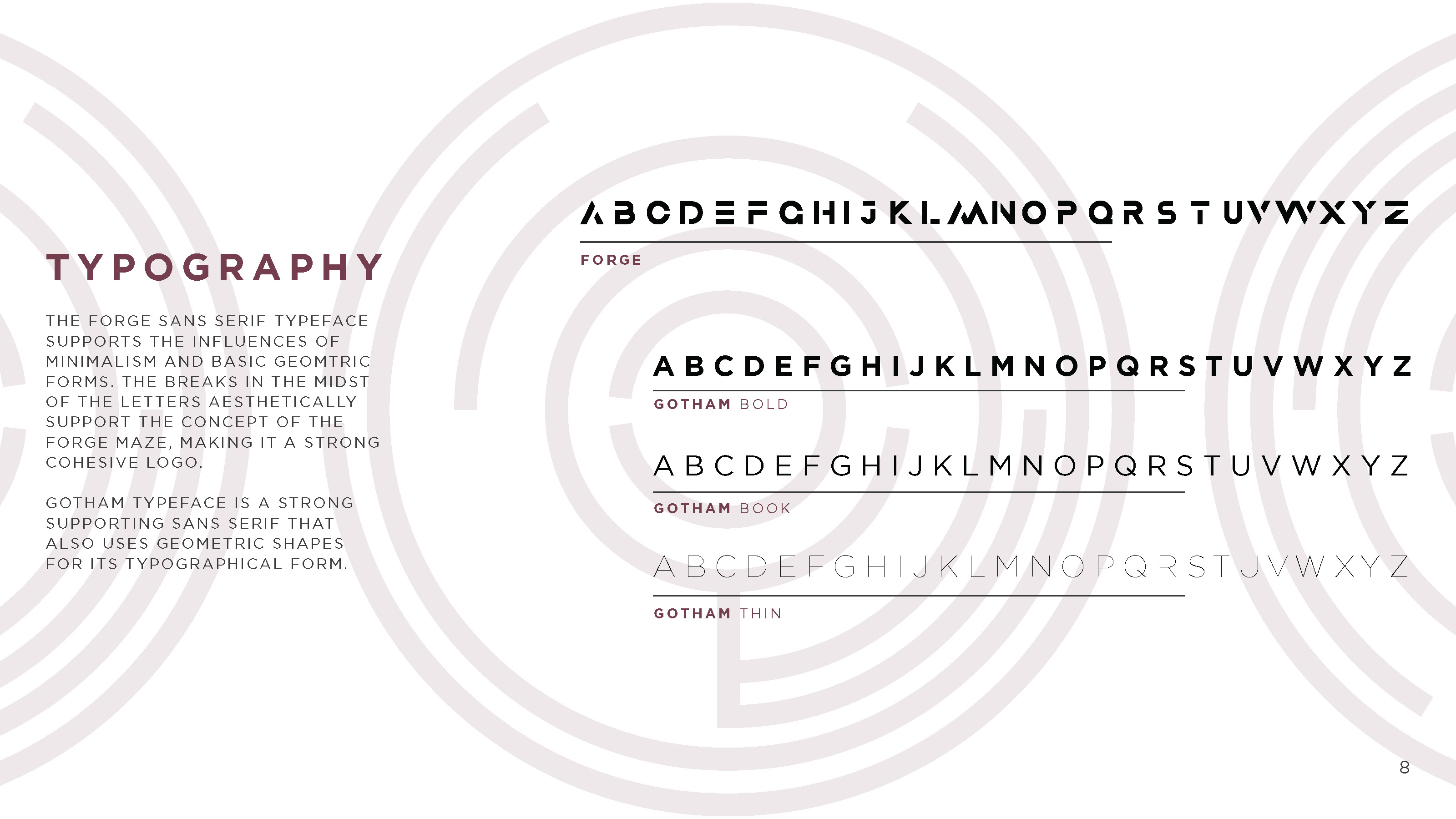 The goal of forge is to create a healthier mind along with a healthier body for everyone, no matter what level of experience you have. She wanted a fitness yoga brand that pushed body positivity. That no matter how you looked your health can align with how you feel. With that mission statement in mind, the name Forge sparked the idea of a maze – forging your own path.